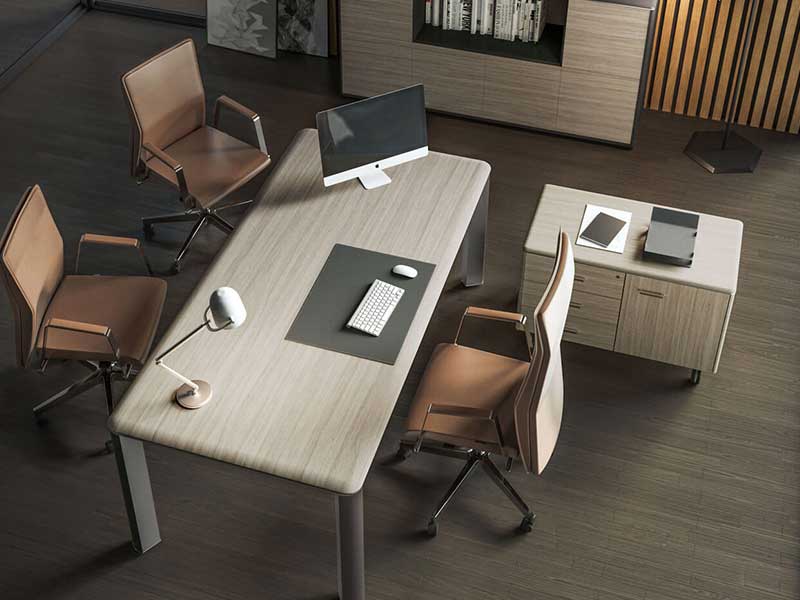 Iulio est un bureau de direction très moderne. Grâce à ses formes organiques délicates et à ses lignes essentielles, exprime légèreté et élégance. Une offre complète de bureaux, de tables de réunion et de salon, de meubles de rangement et d’armoires pour un espace de direction raffiné et moderne.